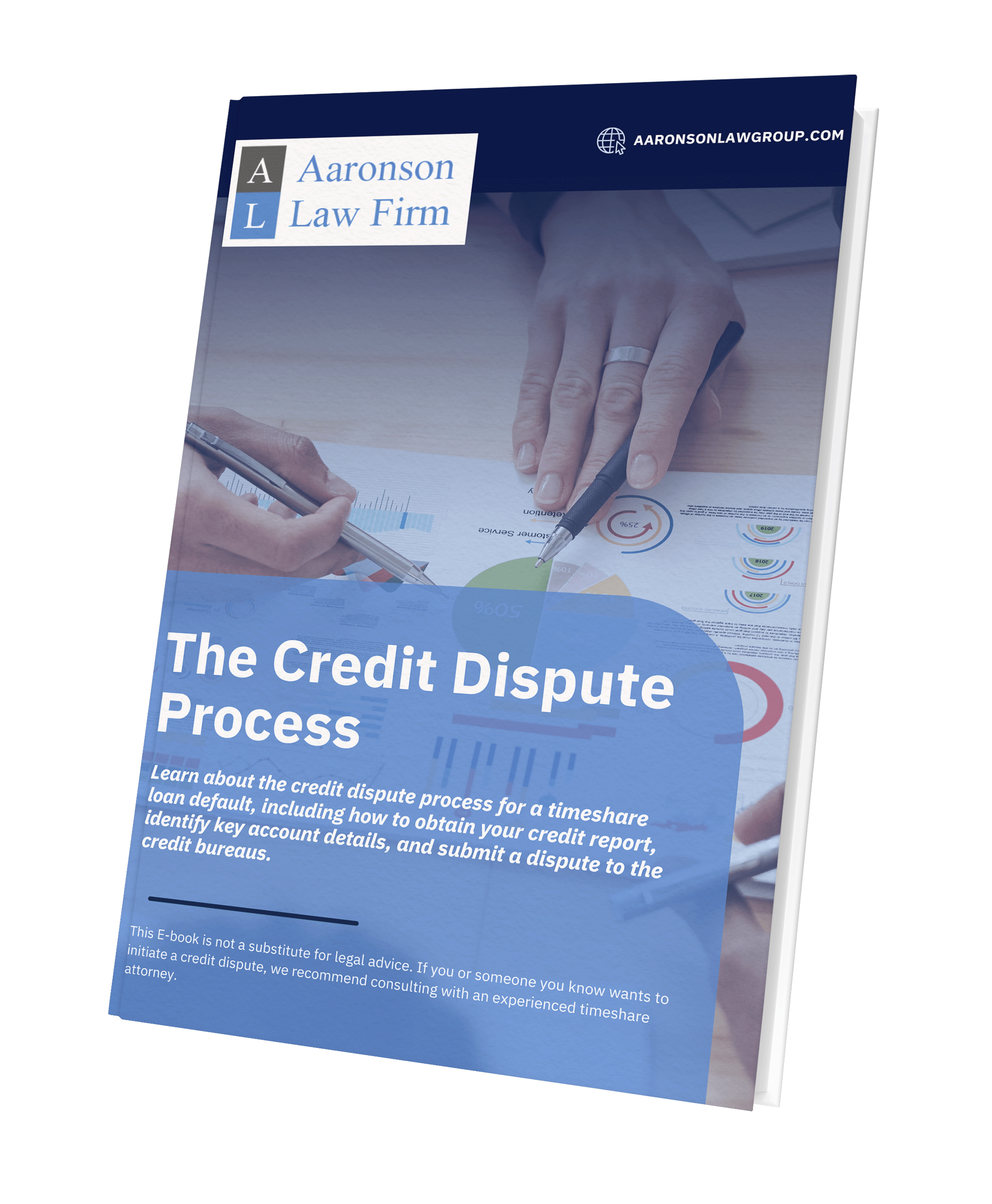 This guide is for anyone in a timeshare loan default who needs a thorough overview of the credit dispute process. Authored by the knowledgeable attorneys of the Aaronson Law Firm, this E-book outlines practical steps for obtaining and reviewing your credit report, identifying disputed items, and formally submitting a dispute to the credit bureaus.